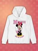 Journey across the roads of life with this Disney Mickey and Friends hoodie for kids girls. The pullover hoodie features a blocky MInnie Mouse wearing pink dress and standing in the center with shy face on the sweatshirt. The "Minnie One Of A Kind" title is printed below of Minnie Mouse cartoon. The sweatshirt comes in a off white with hooded neck. Bring it home to your kids gamer and Disney fan today from Kidsville