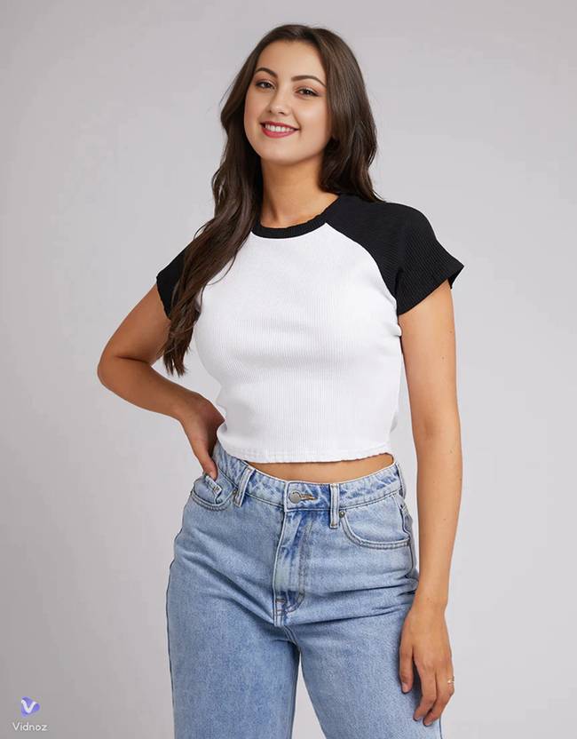Women Colorblock Round Neck Cotton Blend White T-Shirt