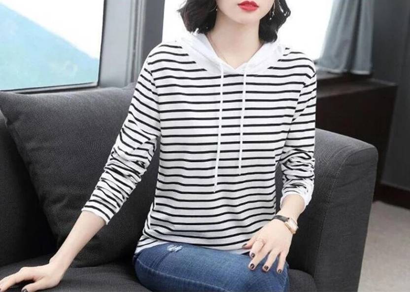 Helpom Striped Women Hooded Neck Multicolor T-Shirt