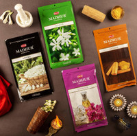 Hem Madhur Incense Sticks | Pooja Room Items for Aromatic Environment Jasmine, Mogra, Sandal, Intimate, Combo Fragrance Pack (135 GMS Each) (4 Units, Set of 4)