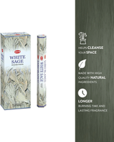 HEM Premium White Sage Incense Sticks draw inspiration from ancient Indian traditions and feature over 35 years of experience. Made with natural ingredients and essential oils, each stick releases a soothing aroma that purifies your space and calms your mind. These incense sticks are ideal for meditation, prayer, or daily use. They provide a clean, even burn with minimal smoke. The crisp, earthy scent of White Sage promotes clarity, balance, and relaxation. Beautifully packaged, they make meaningful gifts and enhance any sacred or living space with their calming presence. Experience tranquility and inner peace with every gentle breath of this aromatic ritual.
