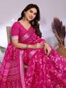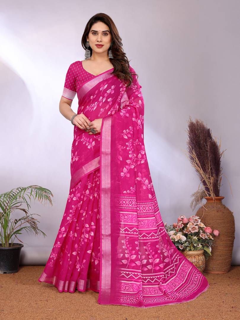 Daily Wear Women's Floral Linen Saree Printed Design with Unstitched Blouse