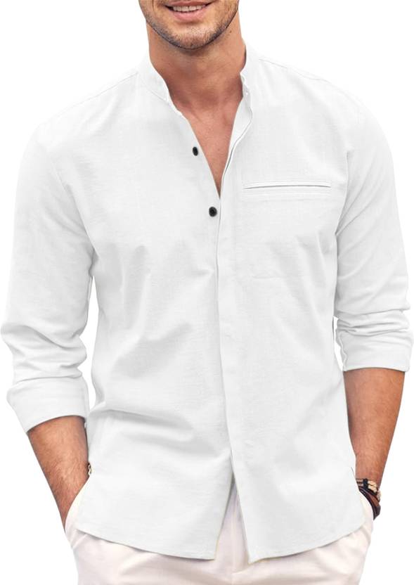 HEMADHAV Men Solid Casual White Shirt