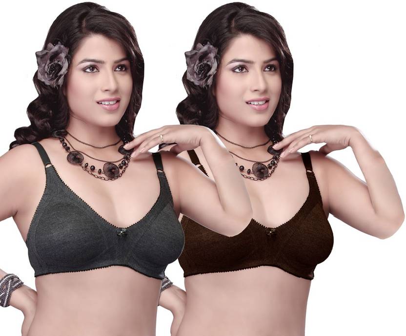 Pack of 2 Women Full Coverage Non Padded Bra (Brown, Grey)