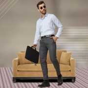 MENS FORMAL TROUSER events and workplaces demand a formal dress code brings to you this formal trouser with a regular fit that can be worn to such places. They are meticulously stitched out of cotton mix material and feel smooth against your skin. The side pockets allow you to comfortably place your palms inside them along with storing wallets and handkerchiefs. The mid-rise waist provides a modern look and the belt loops allow a tighter fit when a belt is slipped through the loops. The button and zip closure is easy to use. You can try on these men’s formal trousers to match your professionalism.