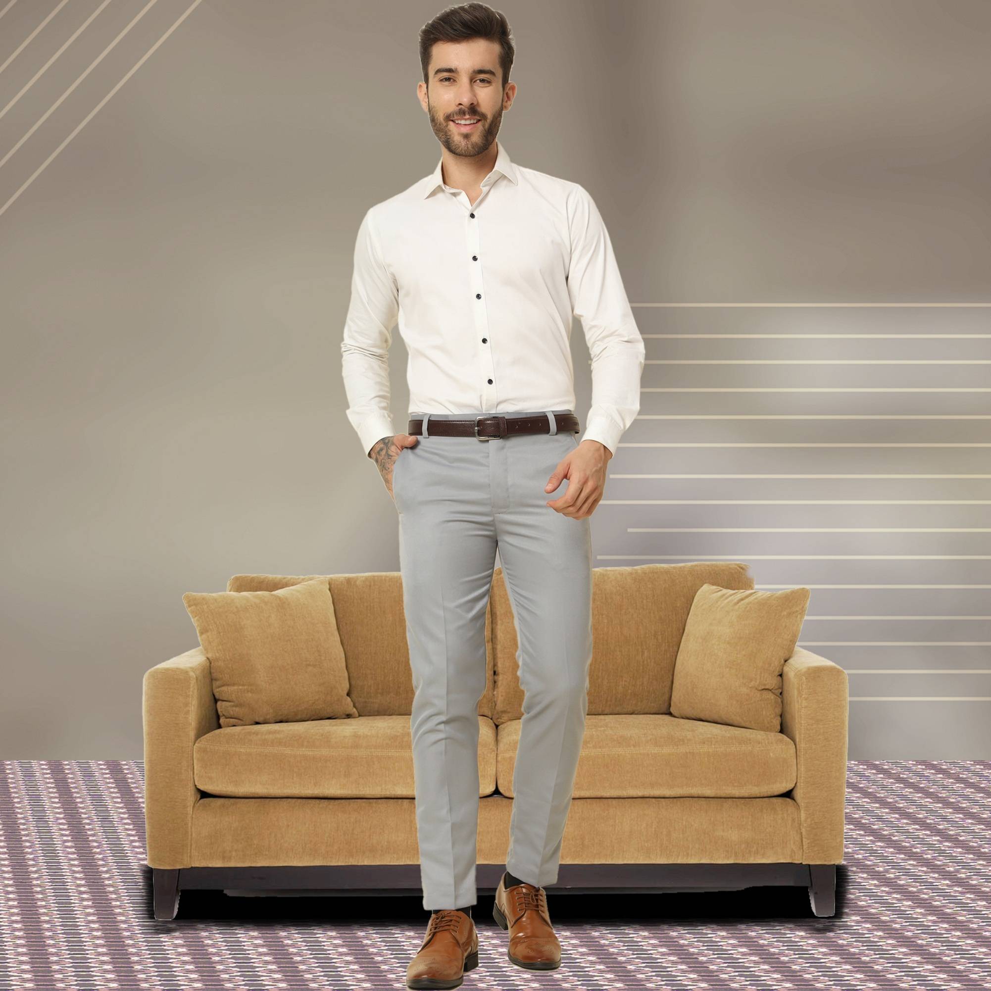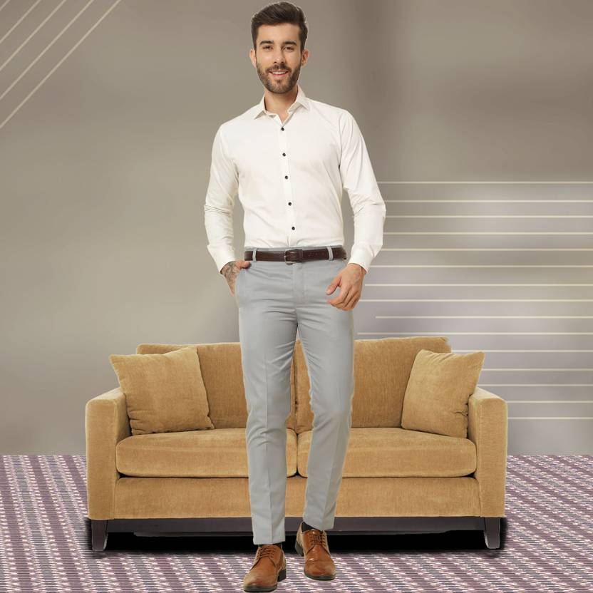 MENS FORMAL TROUSER events and workplaces demand a formal dress code brings to you this formal trouser with a regular fit that can be worn to such places. They are meticulously stitched out of cotton mix material and feel smooth against your skin. The side pockets allow you to comfortably place your palms inside them along with storing wallets and handkerchiefs. The mid-rise waist provides a modern look and the belt loops allow a tighter fit when a belt is slipped through the loops. The button and zip closure is easy to use. You can try on these men’s formal trousers to match your professionalism.