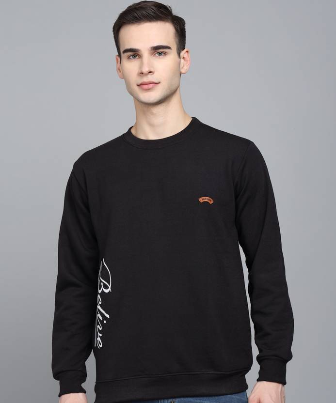 HEMLOCK Solid Round Neck Casual Men Black Sweater