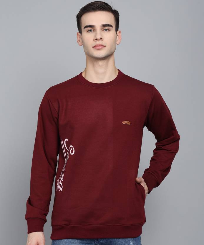 HEMLOCK Solid Round Neck Casual Men Maroon Sweater
