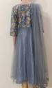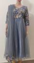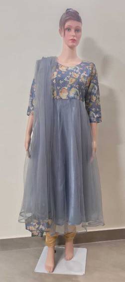 Step into effortless grace with this enchanting netted dress, designed to make you stand out at any special occasion. The bodice features a rich silk fabric with intricate floral patterns, used on the neckline and 3/4th sleeves, offering a luxurious and ethnic touch. The double-layered flowing net skirt adds dreamy volume, while the satin lining underneath ensures all-day comfort and a flawless fall.