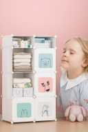 Hemovia 8-Door 8-Shelf Plastic Collapsible PC Collapsible Wardrobe PC Collapsible Wardrobe (Finish Color - New-Pink, DIY(Do-It-Yourself))