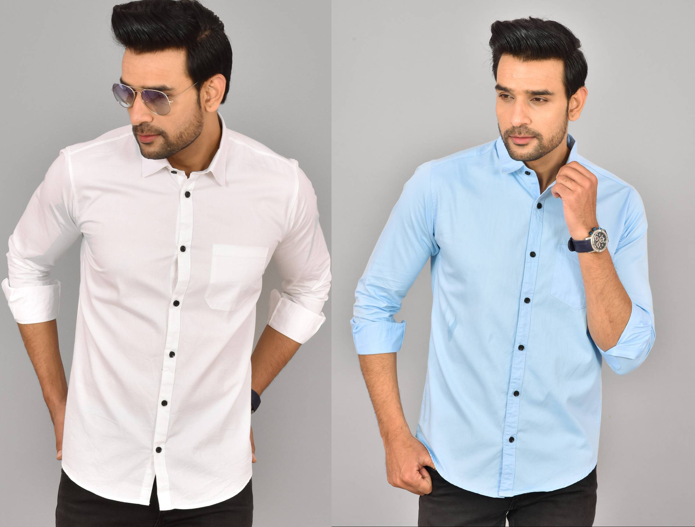 HEMS Men Solid Casual Blue, White Shirt (Pack of 2)