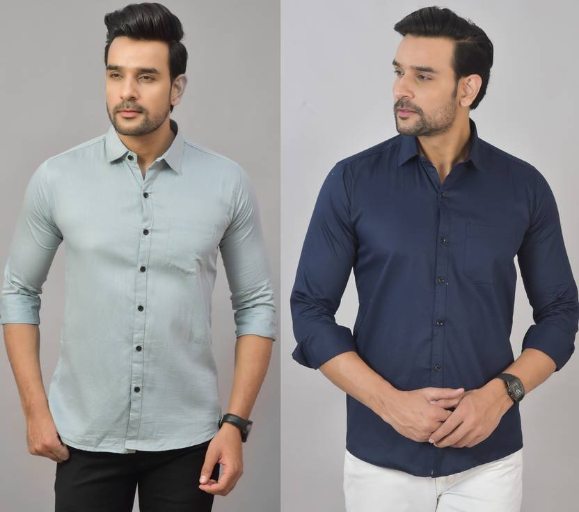 Hems trends Men Regular Fit Solid Spread Collar Casual Shirt  (Pack of 2)