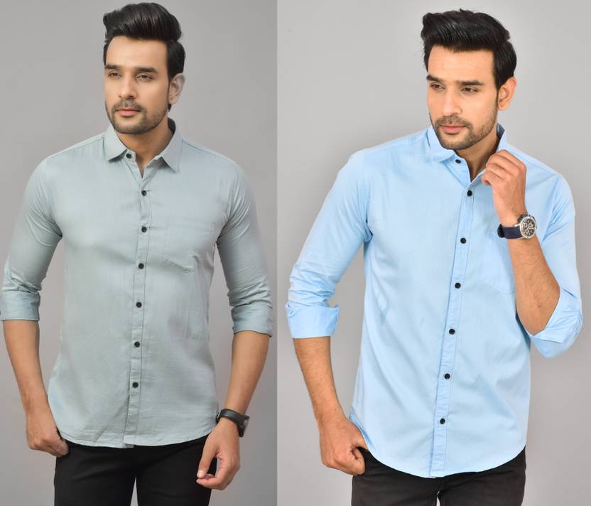 Hems trends Men Regular Fit Solid Spread Collar Casual Shirt  (Pack of 2)