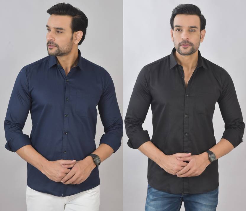 Hems trends Men Regular Fit Solid Spread Collar Casual Shirt  (Pack of 2)