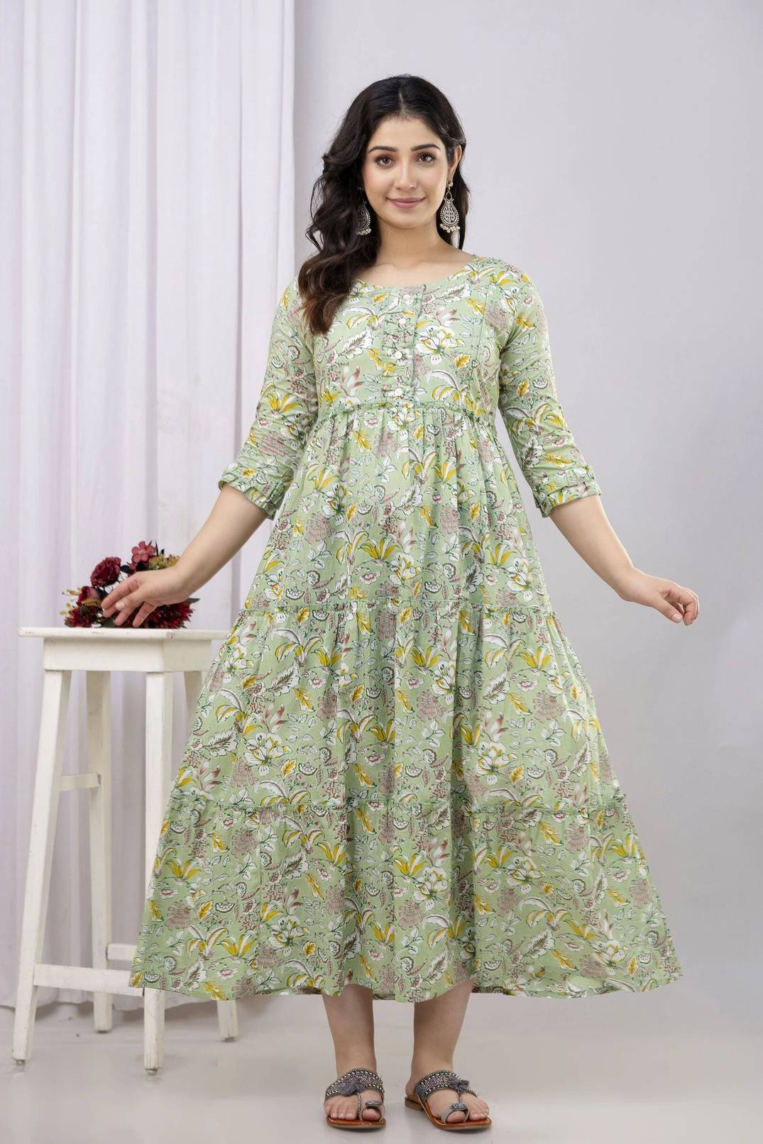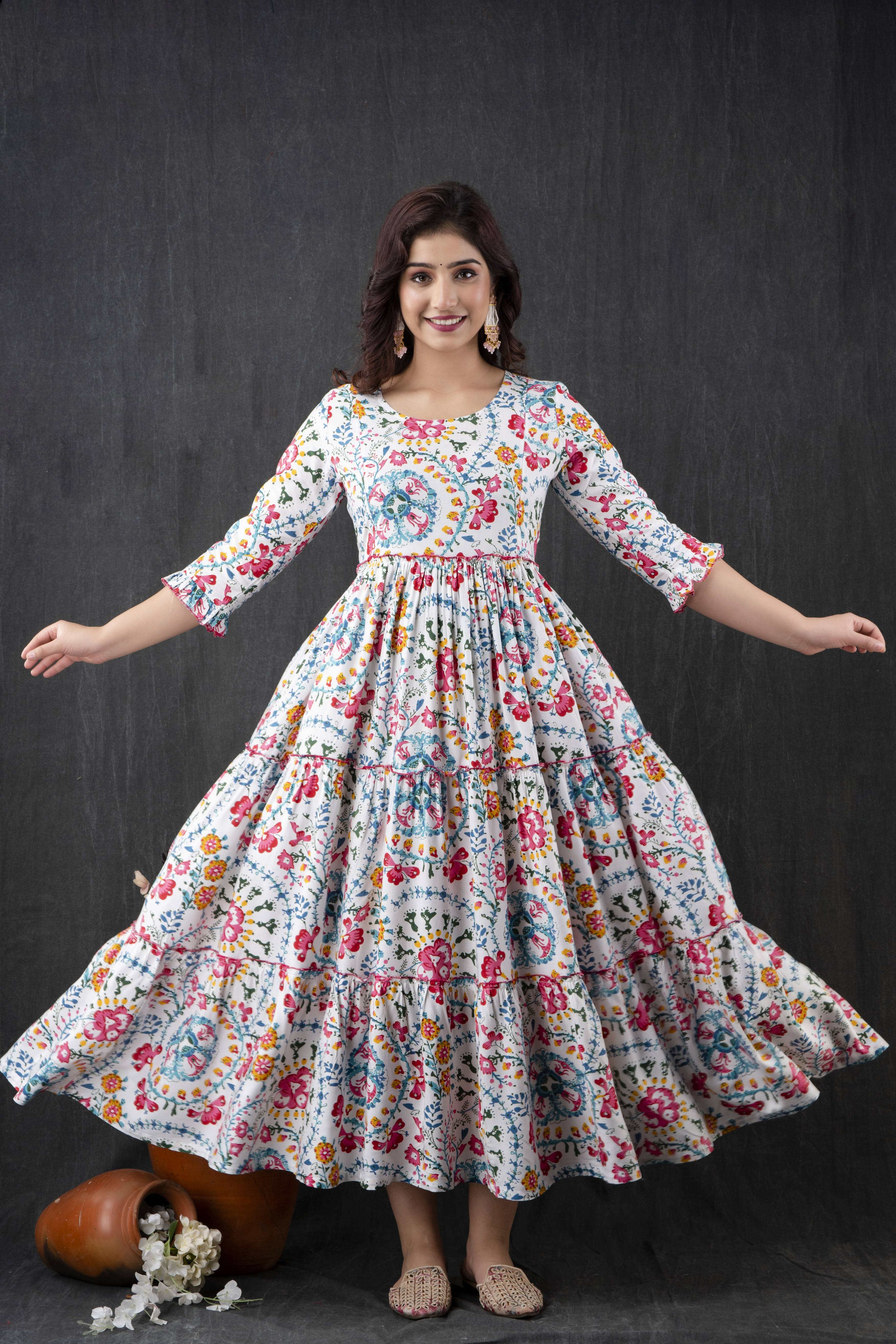 Cotton Blend Stitched Anarkali Gown (White)