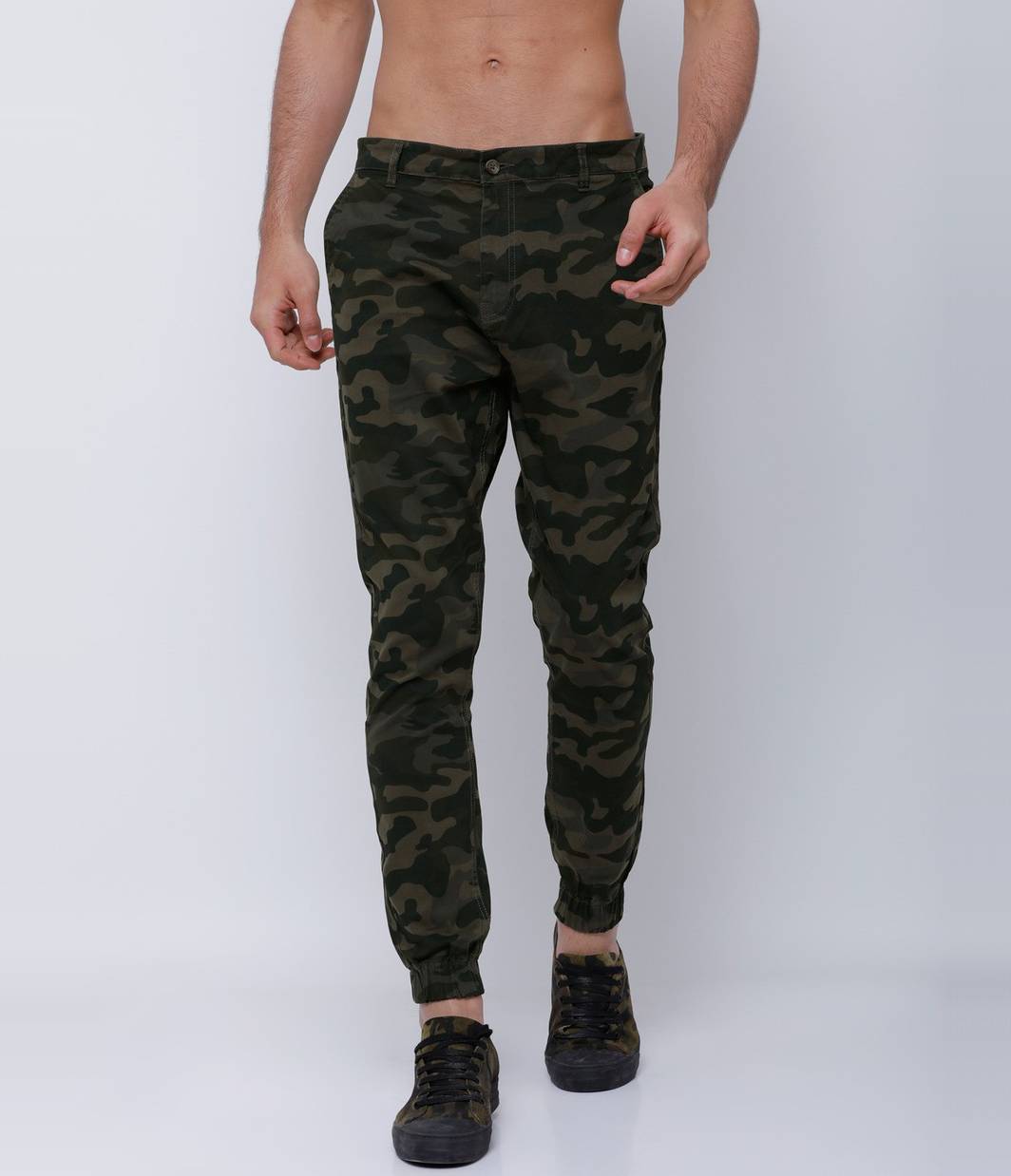 Flaunt a stunning style statement by wearing this Cargo from the latest Urban collection of Hence. It features a button and a zip closure and has six pockets. Adorned with a camouflage (Military) print , it makes up for a classic choice. Has an ankle length. Crafted with cotton blend, that assures you the best of comfort at all times. Tailored to a Tapered fit and offers a mid-rise. Team it with a shirt of your choice and a Jacket to give the urban look. What’s great about them is that they go with every type of shoe — and when we say every type, we mean every type, from flip flops to stilettos. Add these cargo pants and turn your outfit into a smart and classic street wear with High top Sneakers.