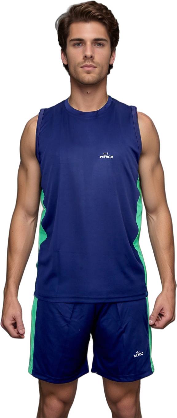 Navy Blue - Green Cut Sleeves/Sleeveless Sando kit (Sando & Short) for Running,Multi Sports, Yoga, Volleyball, Tennis,Cycling, Badminton, Gym & Fitness Inner Wear for Men/Women,Boy/Girl