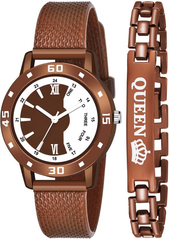 3006+brown queen br QUEEN STYLISH BROWN COLOR WATCH AND QUEEN BRACELET COMBO FOR WOMEN AND GIRLS