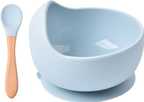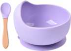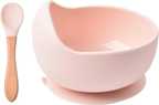 HENIJ Silicone Baby Feeding Bowl and Spoon Set, Suction Base and Wooden Spoon Kit - Silicone (Light Pink)