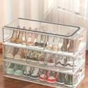 Hensi Shoe Storage Box Clear Plastic Stackable Shoe Organizer Containers with Lids Plastic Collapsible Shoe Stand (Transparent, 1 Shelves, DIY(Do-It-Yourself))