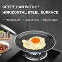 MULTIFUNCTIONAL COMPATIBLE : The stainless steel Crepe Pan can be used in any kitchen and can meet your needs for frying eggs, steaks, omelets and more. It can be used on induction, gas, ceramic and electric stovetops to create more possibilities for your recipes.