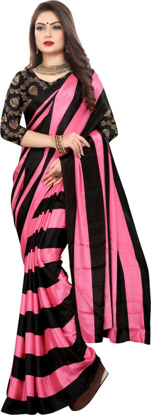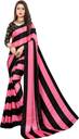 Henzila Striped Bollywood Silk Blend Saree (Black, Pink)
