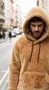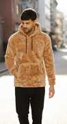 HOODED SWEATSHIRT IN FUR FLANEL FABRIC WITH KANGAROO POCKETS IN FRONT