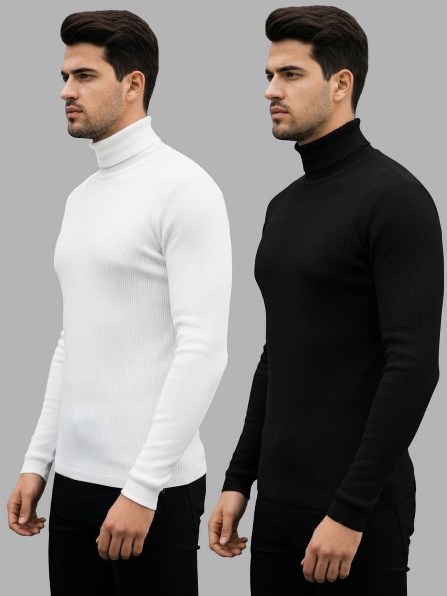 HEPAKA Solid Turtle Neck Casual Men White, Black Sweater