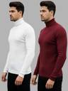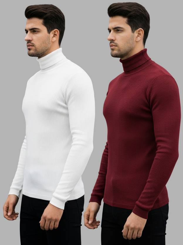 HEPAKA Solid Turtle Neck Casual Men White, Maroon Sweater