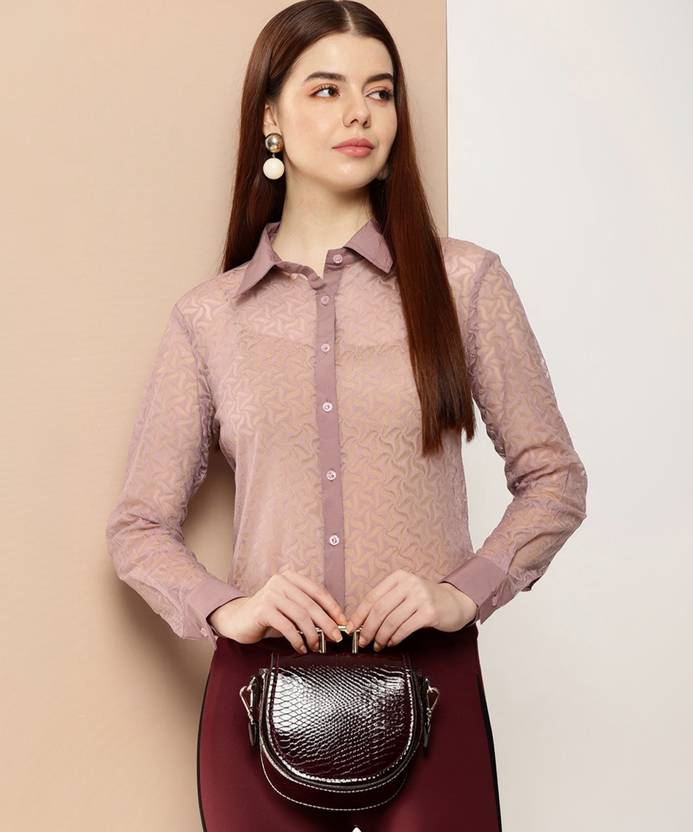 her by invictus Women Self Design Casual Brown Shirt