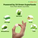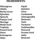 Composition | - Wheatgrass, Alfalfa, Barley Grass, Spirulina, Spinach, Papaya Leaf, Moringa, Methi Seed, Triphala, Fennel Seed, Dates, lemongrass, Ajma, Pipali, Dalchini, Clove, Cardamom, Ashwagandha, Shatavari, Tulsi, Turmeric, Yashtimadhu, Flaxseed, Sesame Seed, Amla, Beetroot