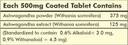 A:One tablet is 500mg with combination of pure natural (375mg ashwagandha powder and 125mg of ashwagandha extract) which is standardised to contain 0.6% - 3mg alkaloid, 0.9% - 4.5mg withanaloid