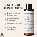 Transform your hair care routine with the power of nature and science in one bottle. The 12 in 1 Hair Growth Oil is a premium formulation designed to tackle hair fall, promote new growth, and restore scalp health using a synergistic blend of 12 natural oils and actives, including Redensyl, Rosemary Oil, Fenugreek Oil, and Onion Oil.Redensyl, a clinically proven breakthrough, works at the follicular level to stimulate hair stem cells and awaken dormant follicles,helping regrow thicker, healthier strands. It is supported by traditional ingredients like Rosemary Oil, known for its DHT-blocking and anti-inflammatory properties; Fenugreek Oil, rich in protein and nicotinic acid to strengthen the hair shaft; and Onion Oil, which boosts circulation and reduces breakage.