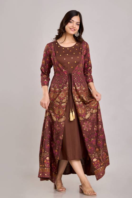 HERE&NOW offers you to this Flared Anarkali Kurta With intricate details, kurta is designed to make you feel like royalty with its flowing silhouette, Color and Fabric.The kurta flares out from the waist, Made With Viscose Rayon, Well Finished and Perfect Stitched.This stunning Dress is Handcrafted in Jaipur & Designed for Festive Parties, Social Gatherings/Important Occasions Gives You a Complete Traditional Outlook and Help you to Easy on the eye.