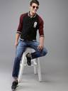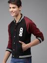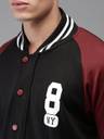 Look effortlessly stylish in this solid black and red varsity jacket from HERE&NOW. Crafted from pure cotton, this comfortable jacket features a stand collar, long sleeves, and a convenient snap button closure. It comes with two pockets and has a straight hem for a classic fit. Perfect for a casual date night, pair it with your favorite shirt and slim jeans to complete the look.
