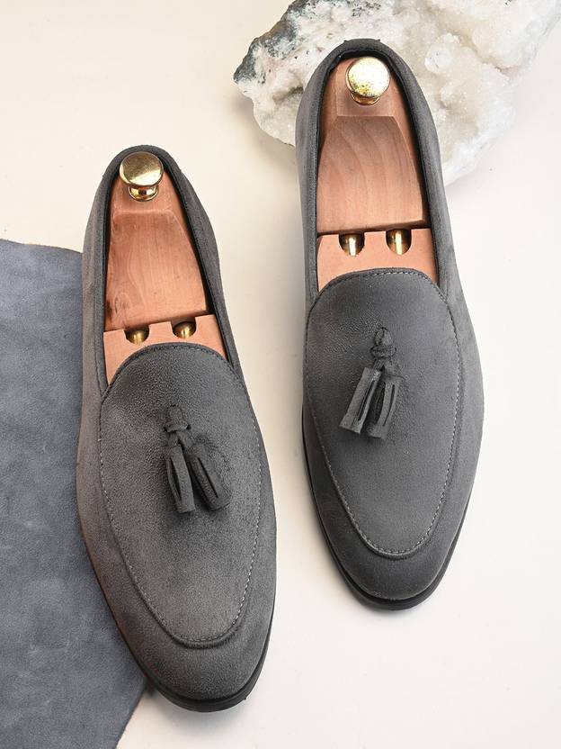 HERE&NOW Grey Tassel suede Slip-ons