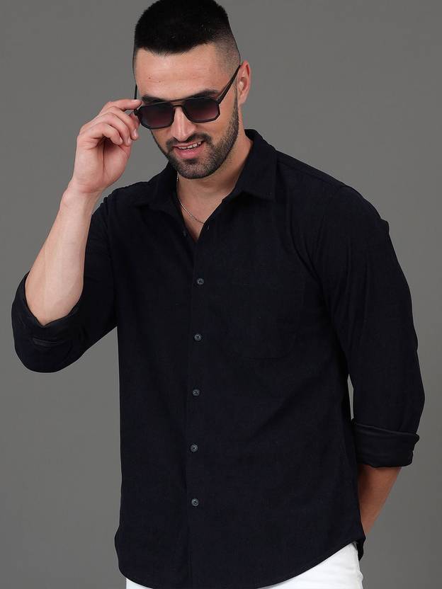 HERE&NOW Men Solid Casual Black Shirt