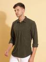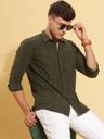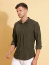HERE&NOW Men Solid Casual Green Shirt