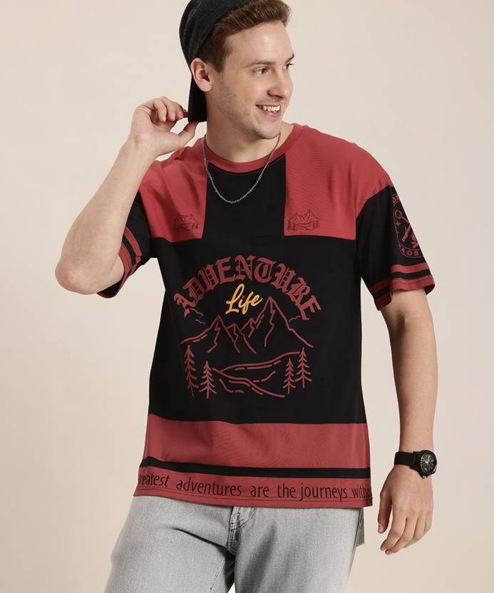 HERE&NOW Printed Men Round Neck Black T-Shirt