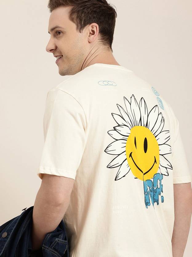 HERE&NOW Printed Men Round Neck Gold T-Shirt