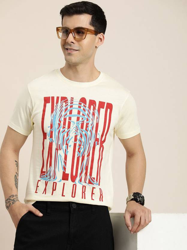 HERE&NOW Printed Men Round Neck Gold T-Shirt