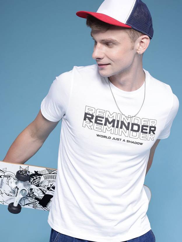 HERE&NOW Printed Men Round Neck White T-Shirt