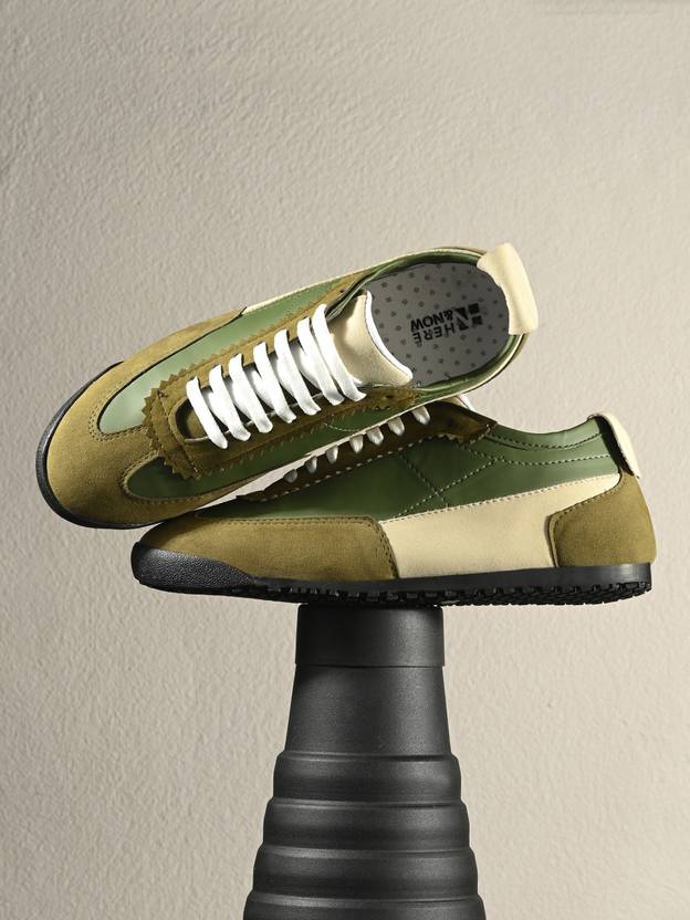 HERE&NOW Sneakers For Men (Green, Beige , 6)