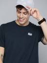HERE&NOW Solid Men Round Neck Dark Blue T-Shirt