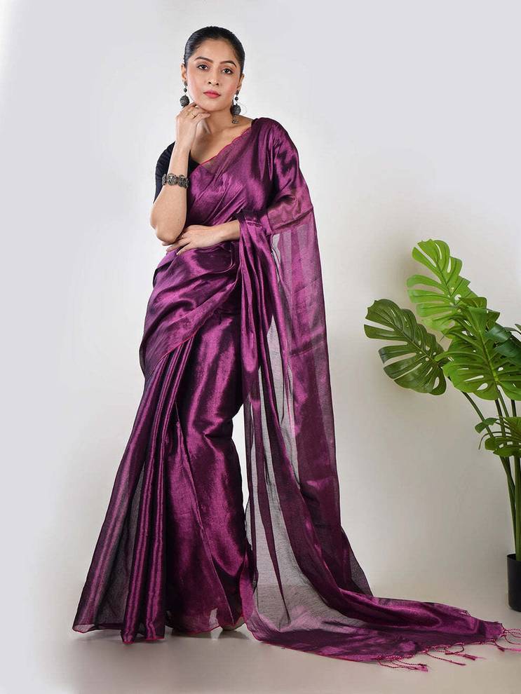 Introducing the elegant Handloom Raga Tissue Cotton Saree. This beautiful saree combines the comfort of cotton with the luxurious texture of tissue, giving it a unique shimmer and shiny look that catches the light beautifully. The intricate weave showcases the artistry of handloom design. Complete with a running blouse piece, this saree allows for a perfectly coordinated and customized outfit. Perfect for festive occasions, evening events, or any time you wish to wear a comfortable fabric with a sophisticated, glamorous finish.