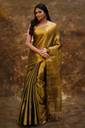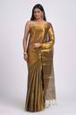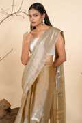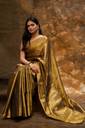 HERE&NOW Solid/Plain Handloom Tissue Saree (Gold)