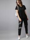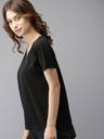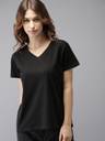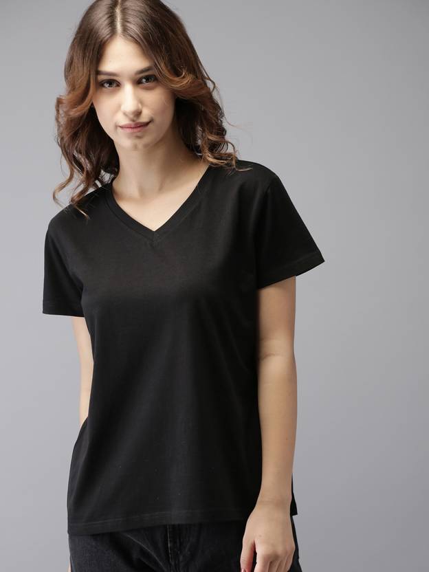 HERE&NOW Solid Women V Neck Black T-Shirt