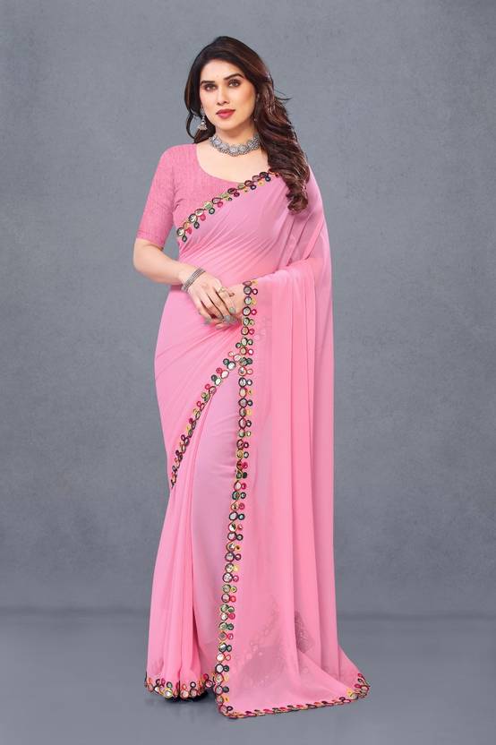 Elevate your style with this stunning pink georgette saree, a perfect blend of elegance and comfort. The lightweight and flowy fabric drapes beautifully, making it an ideal choice for formal occasions, parties, or festive celebrations. The classic black hue adds sophistication, while subtle embellishments or prints can give it a contemporary edge.
