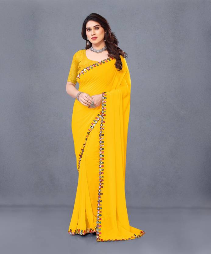 Herink Fashion Solid/Plain Bollywood Georgette Saree (Yellow)