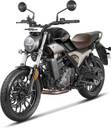 Designed with a round headlamp featuring distinctive H-shaped DRLs, this motorcycle exudes a blend of elegance and contemporary style.